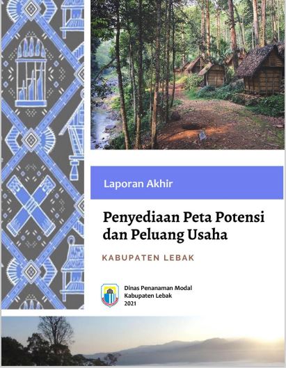 | 10. | ![]() | Penyediaan Peta Potensi dan Peluang Usaha Kabupaten Lebak disusun pada Tahun 2021. Kajian ini merupakan data dan informasi potensi investasi daerah serta peluang pengembangan investasi dalam bentuk data peta yang dilengkapi dengan metode analisis kajian yang terpadu, lengkap dan akurat. dokumen ini bertujuan memberikan kemudahan bagi publik, khususnya calon investor dalam menentukan pilihan dari berbagai alternatif peluang investasi yang ada di Kabupaten Lebak dengan berbagai keunggulan dalam rangka meningkatkan daya tarik investasi di Kabupaten Lebak. | Penyediaan Peta Potensi dan Peluang Usaha Kabupaten Lebak |